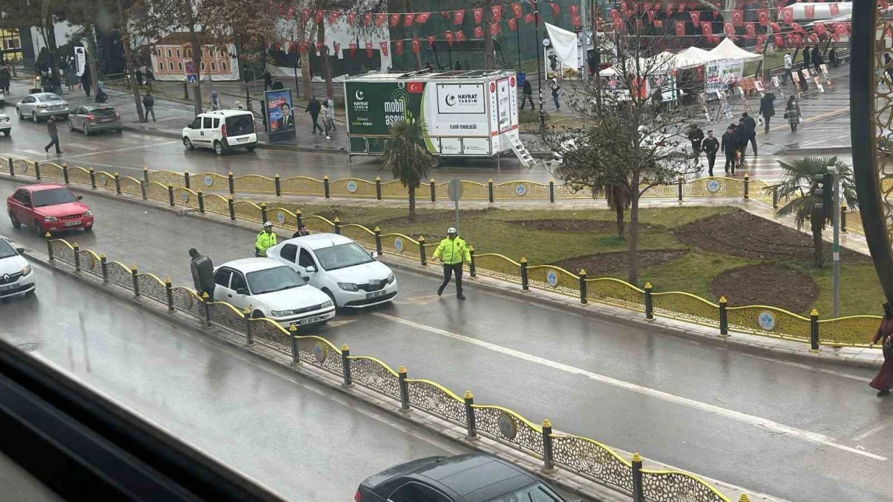 Olay, şehrin en işlek caddelerinden biri olan Gazi Caddesinde meydana geldi. Edinilen bilgiye göre, trafikte seyir halinde olan bir otomobil, bir anda arıza vererek durdu. Duran aracı fark eden trafik polisleri, sürücünün yanına giderek trafiğin kilitlenmemesi için otomobili itmeye başladı. O anlar bir vatandaşın cep telefonu kamerasına yansıdı.