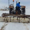 Traktörün arkasına bağladığı aparatla mahallenin yolunu açıyor