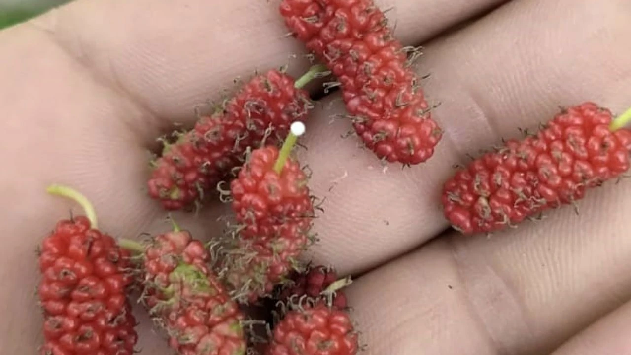 Tunceli'de, kırmızı dut ağacı sonbaharda ikinci kez meyve verdi.