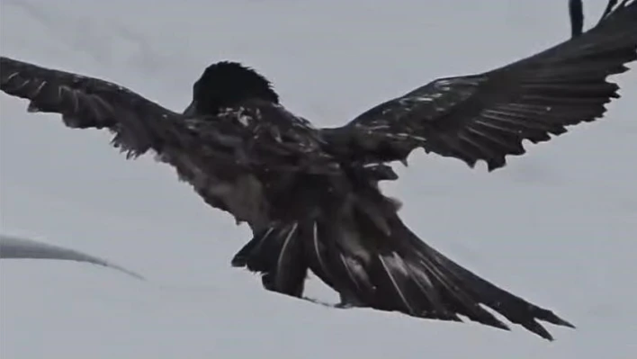 Tunceli'de karlı arazide kara akbaba görüntülendi