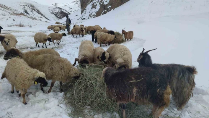 Küçükbaş varlığında ilk sırada yer alan Van’da besiciler, hayvanları için kışın zorluklarına göğüs geriyor. Van’ın Gürpınar ilçesinde, besiciler çetin kış şartları ve bölgenin zorlu coğrafyasına rağmen hayvanlarının bakımını ihmal etmiyor. Besiciler, köyün uzağında yemledikleri hayvanlarını akşam saatlerinde tekrar ağıla götürüyor. Sabahın ilk ışıklarıyla yine zorlu geçecek bir güne başlıyorlar. Kışın çetin şartlarında hayvanları için göğüs geriyorlar. Gürpınar ilçesi Topçudeğirmeni Mahallesi’ne bağlı Bükülmez mezrasındaki besiciler, hayvanlarını beslemek için zorlu bir mesai harcıyor. Günde iki kere hayvanlarına ot ve saman veren mahalleli, zorlu kış şartlarında hayvanlarının bakımlarını ihmal etmiyorlar. Hayvanları için günde iki kere ot ve saman verdiklerini ifade eden Mecit Türker, “Kış mevsimi gelince günde iki kez bu yöntemle hayvanlarımızı besliyoruz. Bu sene kar yağışı diğer senelere göre az yağdı ama soğuk çok etkili oldu. her yıl aynı yöntemle hayvanlarımızı besliyoruz" dedi.