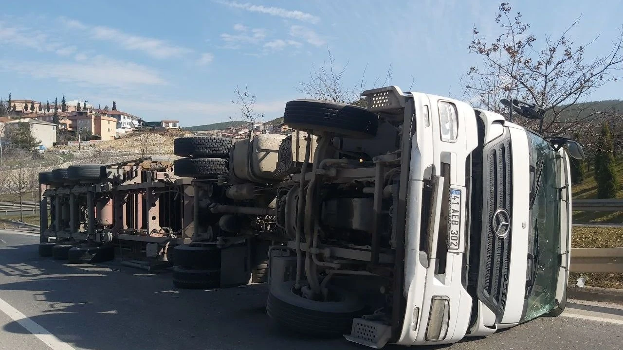 Kocaeli’nin Dilovası ilçesinde viraja hızlı girerek devrilen tırın sürücüsü yaralandı.