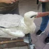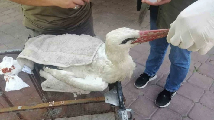 Iğdır'ın Aralık ilçesinde vatandaşlar tarafından yaralı halde bulunan leylek ekiplere teslim edildi.