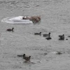 Sürüler halinde Kars'a gelen yeşilbaş yaban ördekleri, Kars Çayı'nda gönüllerince yüzüyor ve yiyecek ihtiyaçlarını karşılıyor.