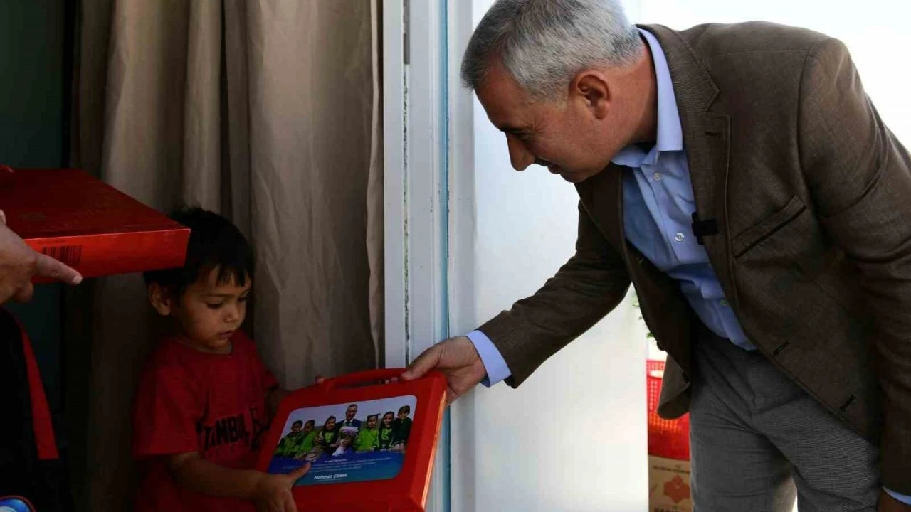 Yeşilyurt Belediyesi tarafından, ilçedeki konteyner kentlerde kalan ilkokul birinci sınıf öğrencilerine eğitim seti dağıtıldı.