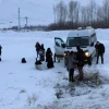 Van’ın Gürpınar ilçesinde gizli buzlanmadan dolayı yoldan çıkan minibüs savrularak kara saplandı. Yolcular büyük panik yaşarken facianın eşiğinden dönüldü.