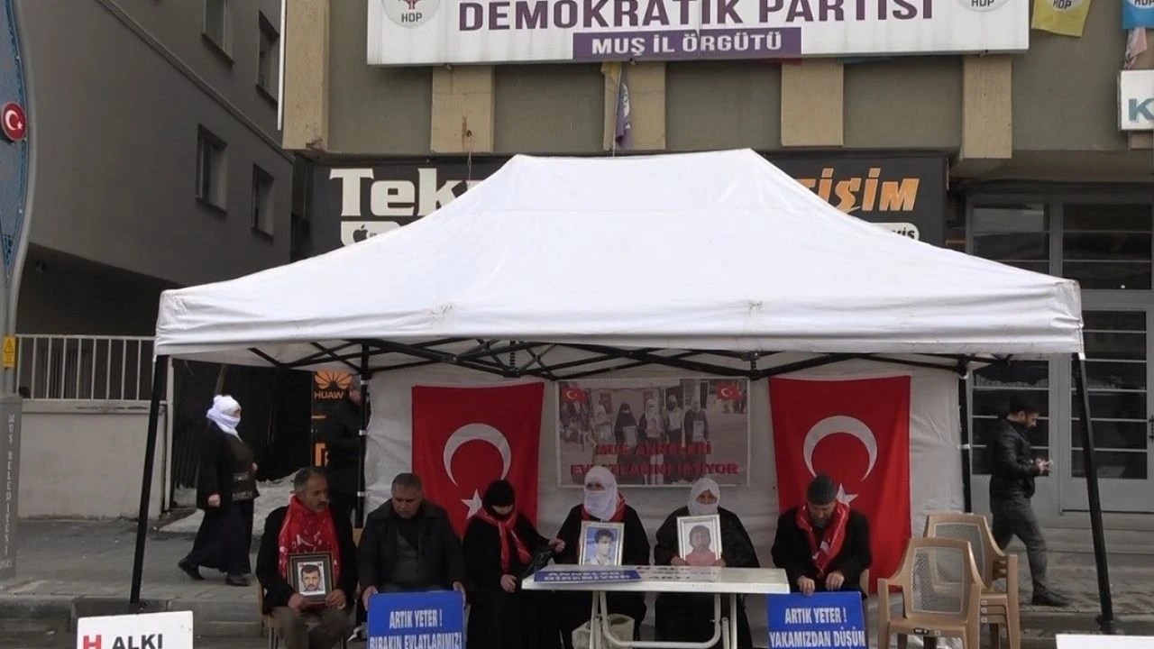 Muş'ta çocuklarının terör örgütü PKK tarafından kandırılarak dağa kaçırılmasından HDP'yi sorumlu tutan aileler, 8 Mart Kadınlar Günü'nde de evlat nöbetini sürdürdü.