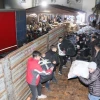 Yüzlerce gönüllü yardım malzemelerini taşımak için insan zinciri oluşturdu